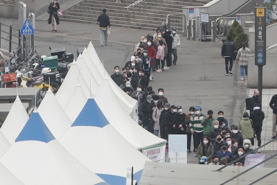 코로나19 검사 위한 끝없는 대기줄... 확진자 38만명대 기록