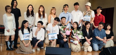 즐거운 기념촬영하는 경기지역 '싱어송라이터 오디션-음악의 탄생'의 4차예선 참가자들