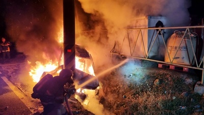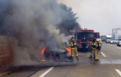안동서 주행 중 전기차, 전신주 충돌·화재....인명피해 없어 [안동=뉴스핌] 남효선 기자 = 17일 오전 0시 27분쯤 경북 안동시 와룡면의 한 도로에서 전기차가 주행 중 전신주와 충돌한 후 화재가 발생해 발화 40여 분 만에 진화됐다. 다행히 인명피해는 없었다. 신고를 받은 경북 소방본부는 진화 인력 27명과 장비 8대를 급파해 발화 40분 만인 이날 오전 1시 7분쯤 완전히 진화했다. 17일 오전 0시27분쯤 경북 안동시 와룡면의 한 도로에서 전기차가 주행 중 전신주와 충돌 후 화재가 발생했다.[사진=경북소방본부]2025.12.17 nulcheon@newspim.com 이 불로 2011년식 전기 승용차량 1대가 전소됐다. 소방과 경찰은 정확한 사고 경위와 피해 규모 등을 조사하고 있다. nulcheon@newspim.com 25-12-17 08:51