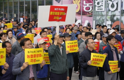 전주농협 '로컬푸드 승인·농민 권익신장 촉구' 대규모 집회 [전주=뉴스핌] 고종승 기자 = 전주농협은 17일 농협전북지역본부 앞에서 농민 조합원 임직원 등 2000여 명이 참석한 가운데 '로컬푸드 승인과 농민 권익 신장 및 농협 개혁 촉구 집회'를 개최, 농협중앙회의 불공정한 승인 제도와 지역 농협의 자율성 침해 문제를 제기하고 개혁을 요구했다고 밝혔다. 전주농협은 이번 집회를 통해"농협중앙회가 말로만 새로운 농협을 외치지 말고 농협 개혁에 앞장서야 한다"고 강조하며, "로컬푸드 판매장 불승인을 철회하고 승인해야 한다"고 촉구했다. 전주농협 조합원 등 2000여 명이 '로컬푸드 승인과 농민 권익 신장 및 농협 개혁 촉구 집회'를 개최하고 있다.[사진=전주농협]2025.10.17 lbs0964@newspim.com 또한, 농민을 무시하는 농협중앙회장과 지역본부장의 퇴진을 요구하며, 농가 소득 증대를 위한 로컬푸드 판매장 개점에 앞장서 한다고 주장했다. 이날 집회는 집회의 목적 및 성명서 발표, 농민 대표 호소문 낭독, 조합원 대표 호소문 낭독, 로컬푸드 출하자 대표 발언, 전주농협 노동조합 대표 발언, 농민가요 제창 및 구호 제창, 조합장 마무리 인사 순으로 진행되었다. 참가자들은 "농산물 판매 확대로 농가 소득 증대와 농민이 진짜 주인인 농협으로 돌아가야 한다"고 호소했다. 임인규 전주농협 조합장은 "농협중앙회는 로컬푸드 승인을 촉구하고 더 이상 농민의 목소리를 외면해서는 안된다"며 "지역 농협이 자율적으로 운영되고 농민과 함께 성장할 수 있도록, 진정한 새로운 농협 개혁이 필요하다"고 강조했다. 임인규 전주농협 조합장이 로컬푸드 판매장 승인제도 개선 등을 조합원들과 함께 요구하고 있다.[사진=전주농협]2025.10.17 lbs0964@newspim.com 전주농협은 이번 집회를 계기로 농협중앙회에 공식 면담을 요청하고, 로컬푸드 판매장 승인 제도 개선, 농산물 판로 확대, 지역 농협 자율성 보장을 위한 제도 개편 등을 요구할 방침이다. lbs0964@newspim.com 25-10-17 11:48