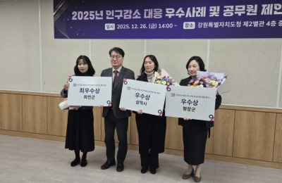 삼척시, 강원도 인구감소대응 평가 '우수 시군' 선정 [삼척=뉴스핌] 이형섭 기자 = 강원 삼척시는 강원특별자치도가 주관한 '2025년 인구감소대응 우수사례 평가'에서 도내 시군 2곳과 함께 우수 시군으로 선정됐다고 28일 밝혔다. 이번 평가는 도내 18개 시군과 강원특별자치도 부서, 공무원 정책 제안 등 3개 부문으로 나눠 진행됐으며, 시군 부문은 각 지자체가 올해 추진한 인구감소 지방소멸 대응 정책 중 실효성과 확장성이 높은 우수사례 발굴에 초점이 맞춰졌다.​ 삼척시, '스포츠케이션'으로 인구감소 대응 우수 시군 선정.[사진=삼척시] 2025.12.28 onemoregive@newspim.com 삼척시는 전국 3대3 농구대회와 연계한 주요 관광지 탐방, 스포츠를 매개로 한 청소년 진로캠프, 스포츠케이션(Sportscation) 컨퍼런스를 통한 인구감소 위기 대응 방안 제시 등 스포츠와 Vacation Education Convention을 결합한 체류 인구 증대 및 도시활력 모델을 구축해 높은 평가를 받았다. 단기 전입 유도에 그치지 않고 '체류 인구 관계 인구 정주 인구'로 이어지는 단계적 인구정책 전략을 제시한 점도 우수사례로 인정됐다.​​ 이명기 기획예산실장은 "앞으로도 인구감소 위기 극복을 위해 단순 방문에 그치지 않고 지역과의 지속적인 관계를 만들어 관계인구로 전환되는 지역활력 인구정책을 지속적으로 발굴해 나가겠다"며 "이러한 노력이 지역경제 활성화로 이어질 수 있도록 최선을 다하겠다"고 말했다.​ 한편 이날 평가에서 화천군이 최우수상, 평창군이 우수상을 수상했다. onemoregive@newspim.com 25-12-28 16:30